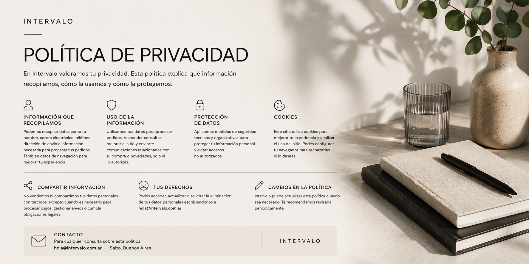 En Intervalo valoramos la privacidad de quienes visitan y compran en nuestro sitio.
